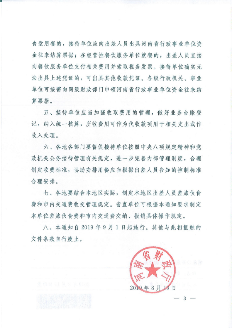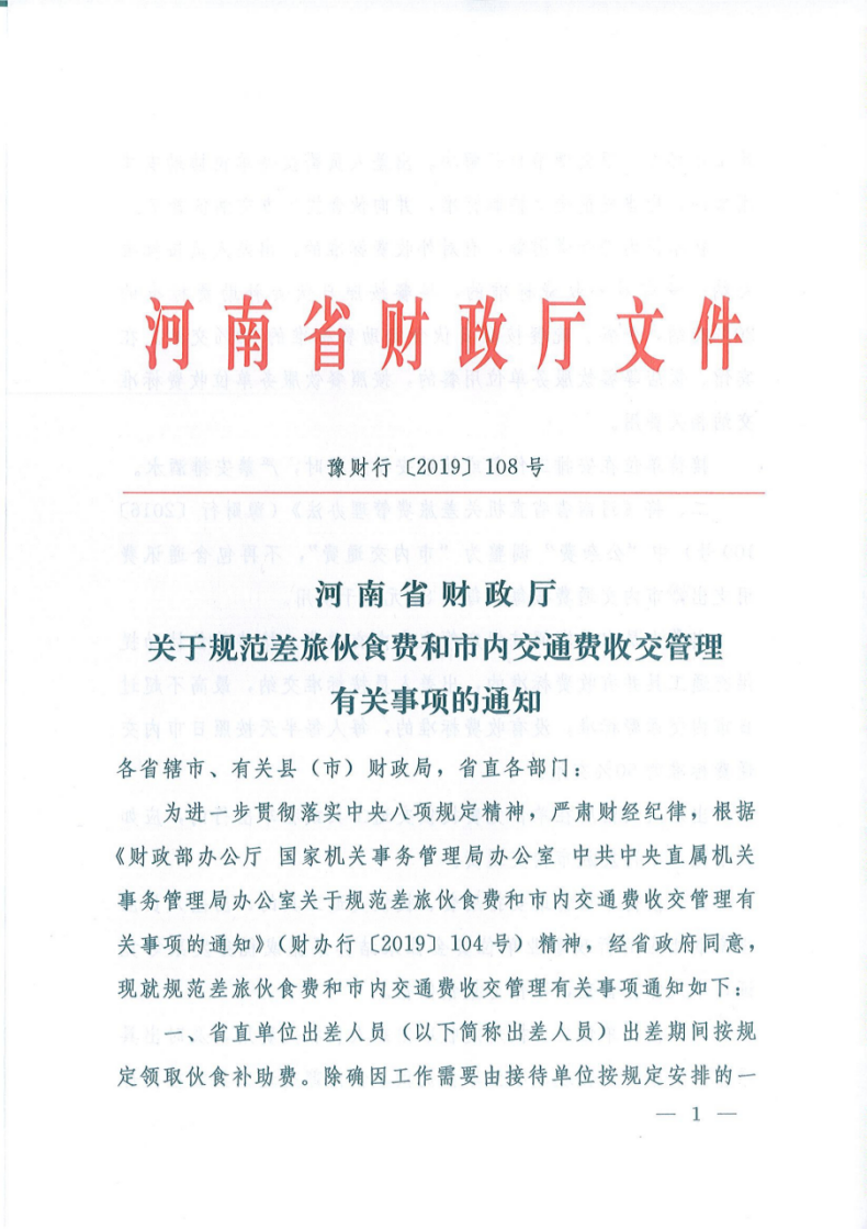 河南省财政厅关于规范差旅伙食费市内交通费收交管理有关规定的通知