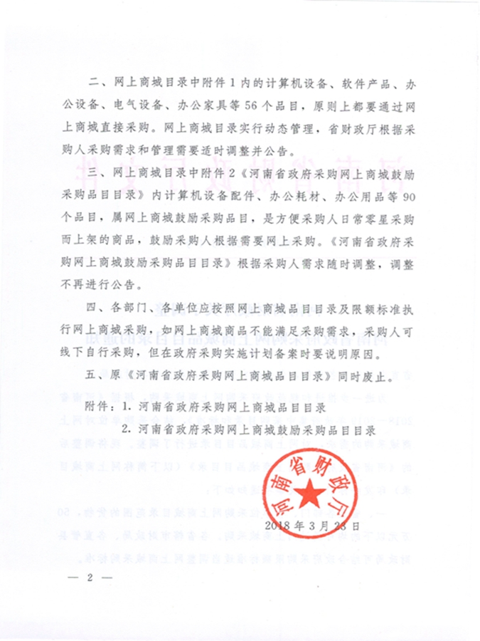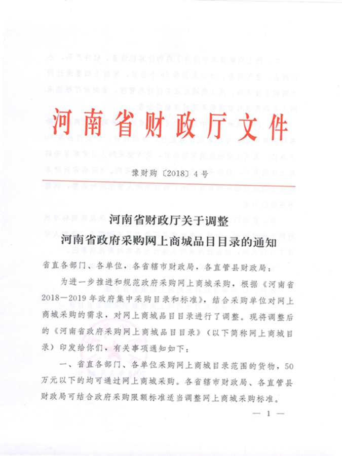 河南省财政厅关于调整河南省政府采购网上商城品目目录的通知